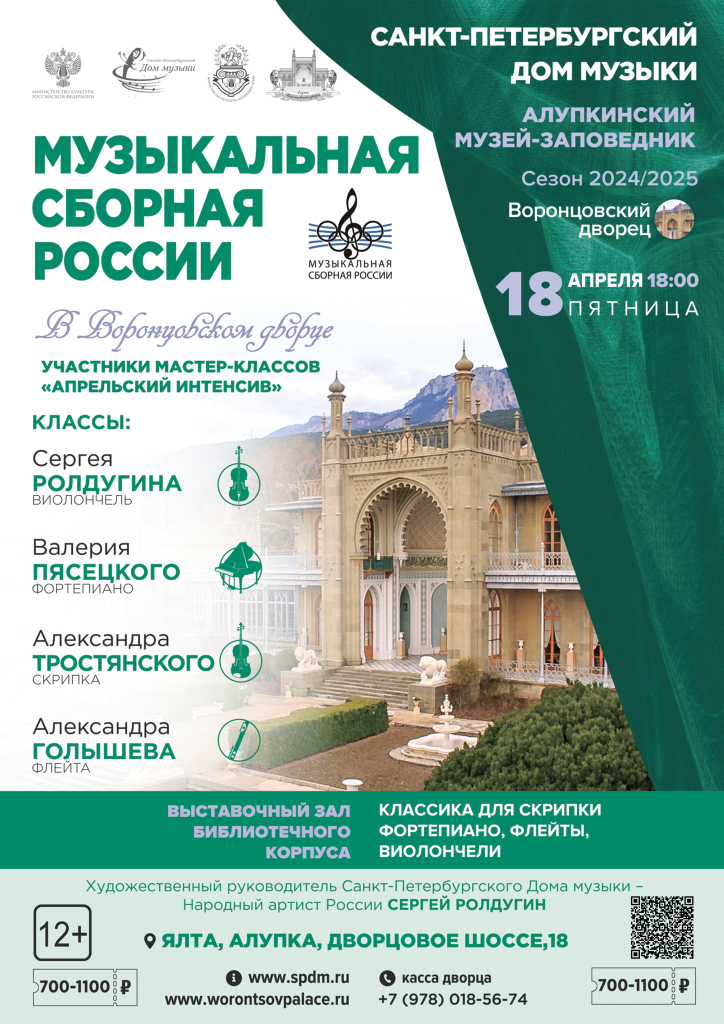 Дорогие друзья! 18 апреля (пятница) в 18:00 в Воронцовском дворце пройдет концерт из цикла «Музыкальная сборная России»