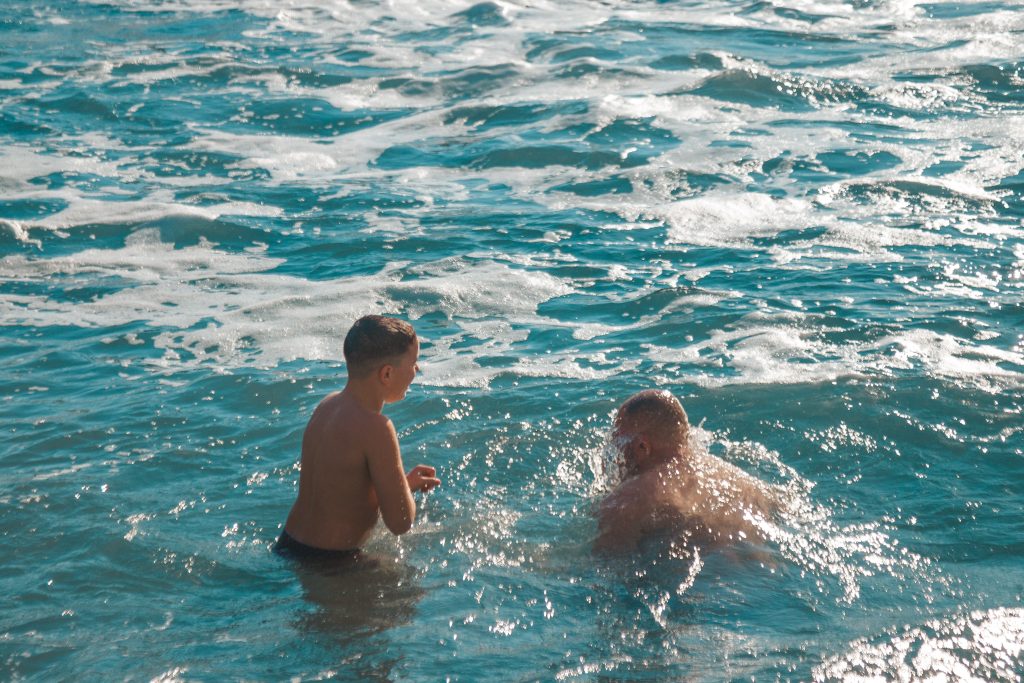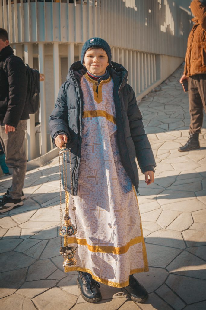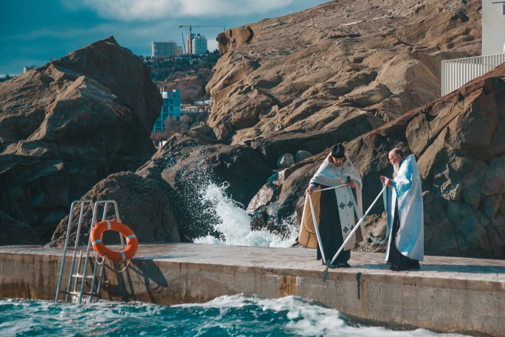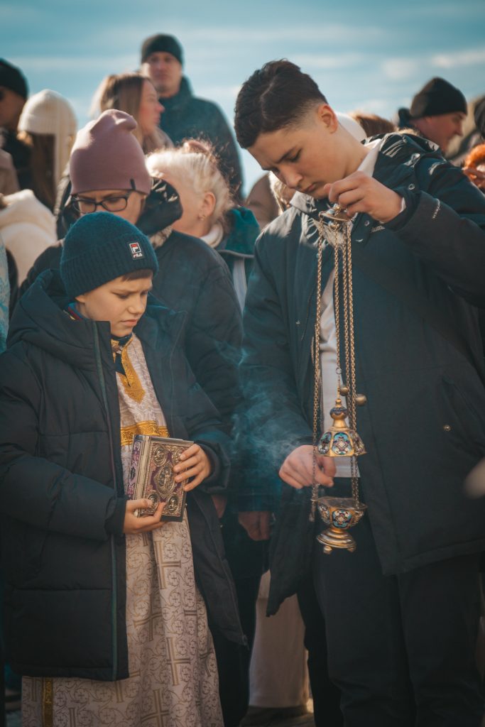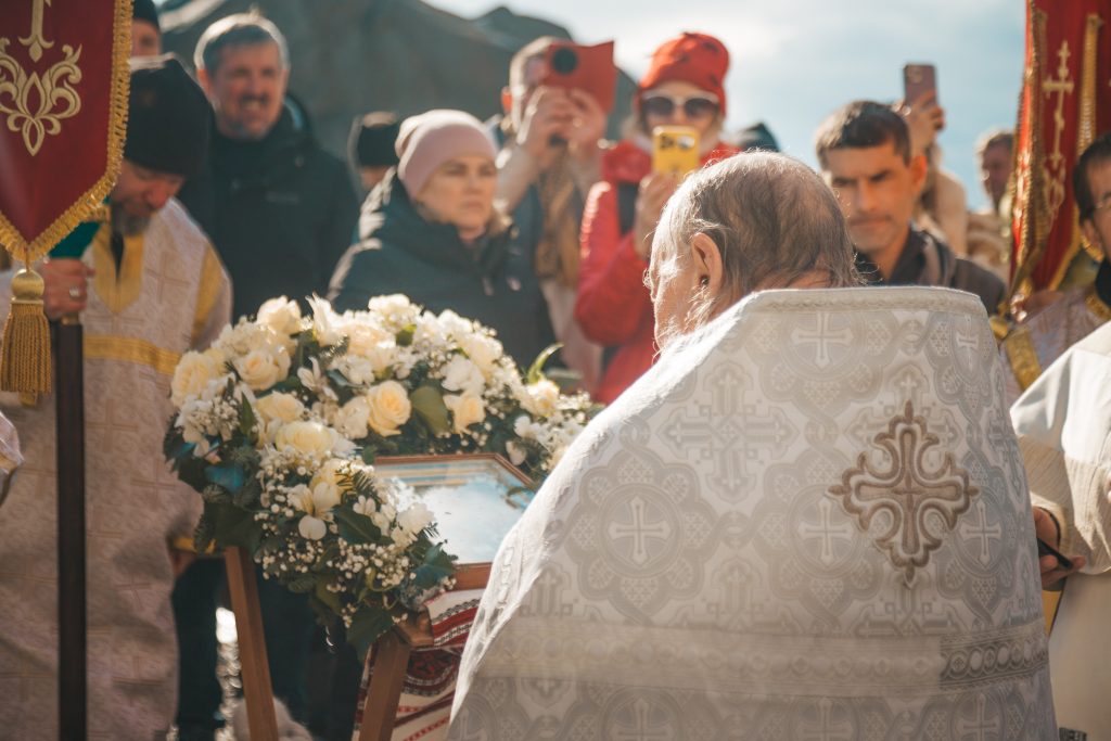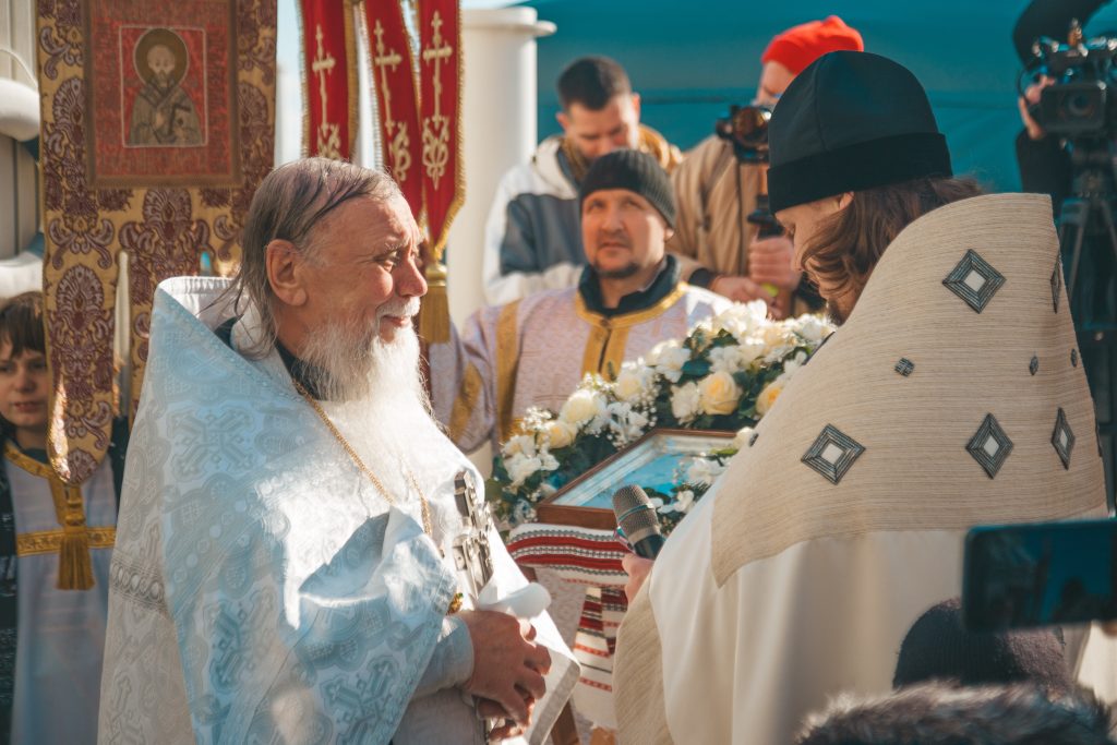 Верующие во главе с духовенством прошли от храма Архангела Михаила к Детскому пляжу, где был совершен торжественный Чин великого освящения вод Черного моря.
