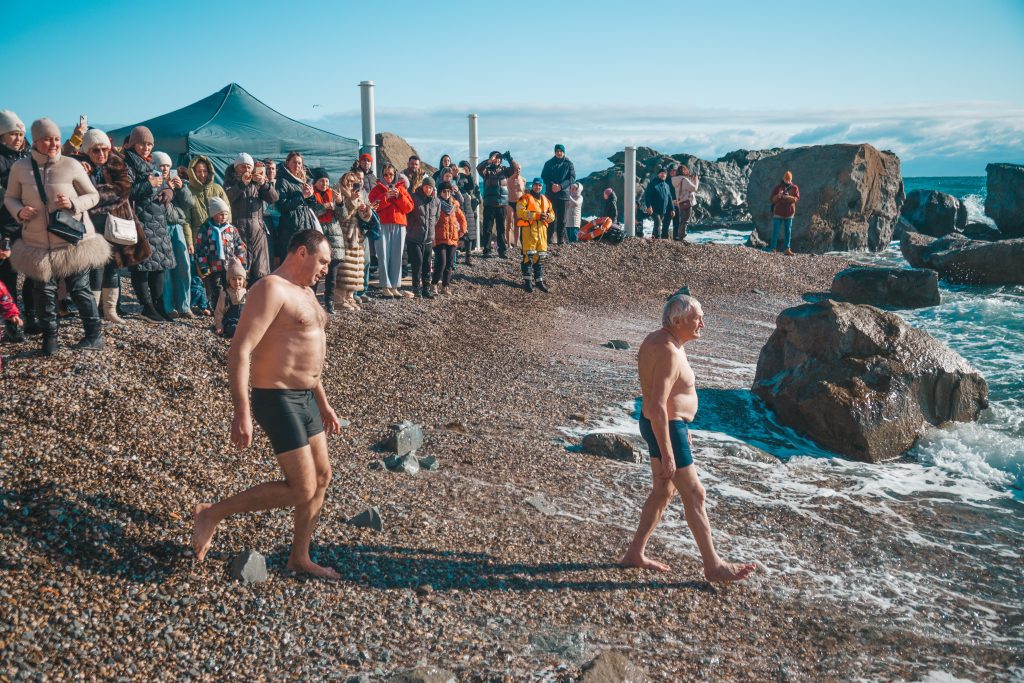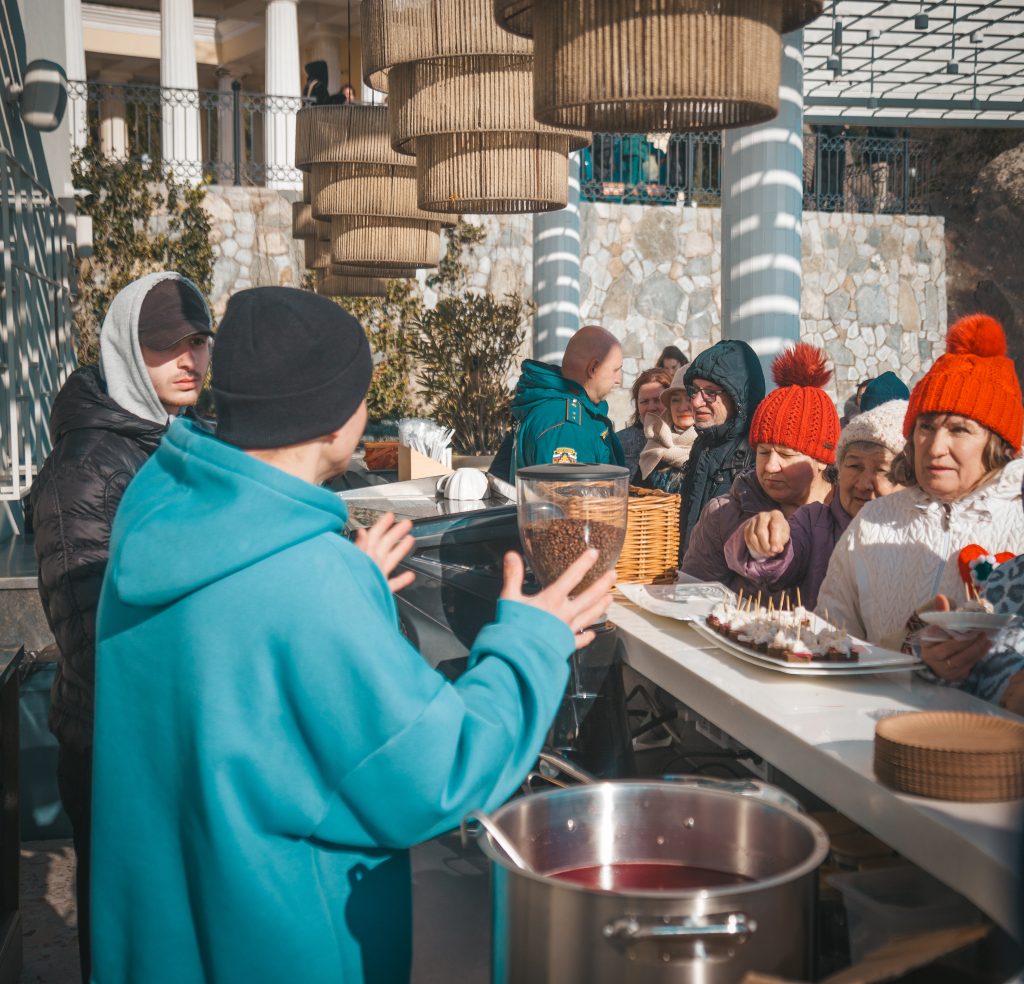 Чтобы согреться после купания, для участников праздника была организована полевая кухня: всех ждали горячий чай, вкусный суп и бутерброды.