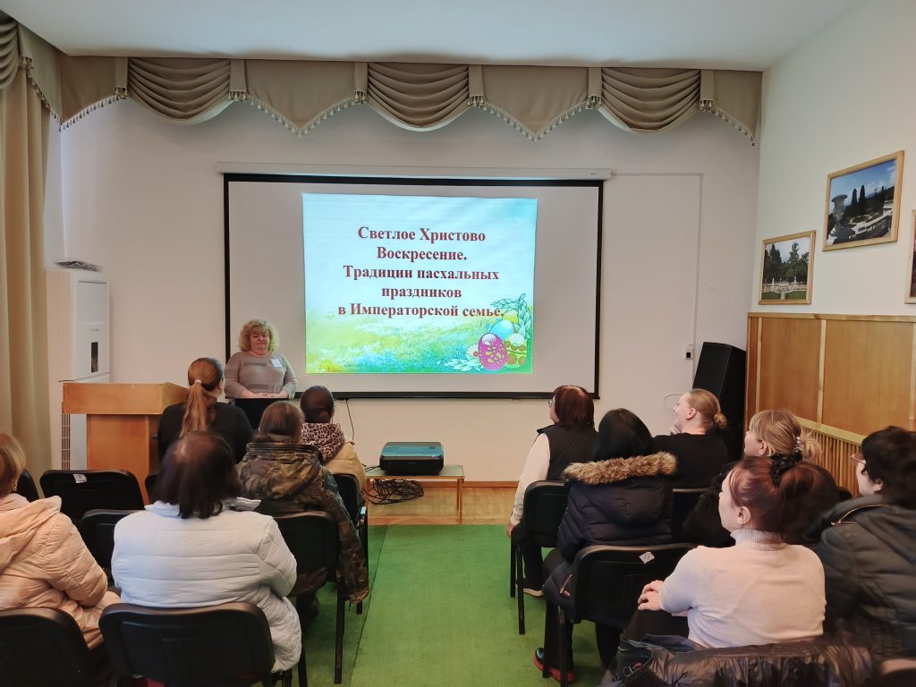 В связи с этим в Массандровском дворце прошли просветительские мероприятия для гостей и жителей Республики Крым. В конференц-зале музея посетители присоединились к тематической беседе «Светлое Христово Воскресение. Слушателей познакомили с традициями празднования Светлого Христова Воскресения в семье Венценосных владельцев Массандровского дворца – Императоров Александра III и Николая II.