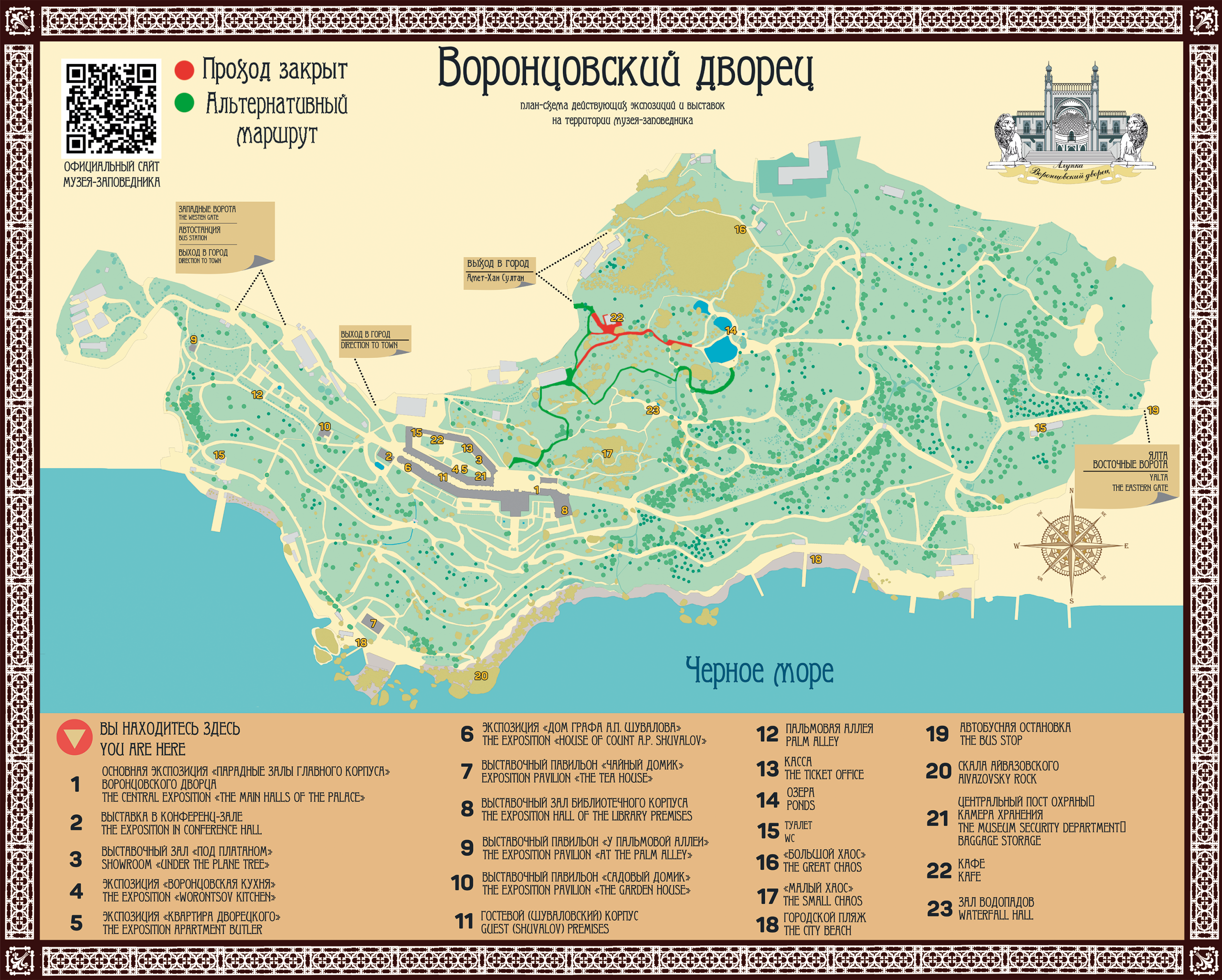 The scheme of movement on the territory of the Alupka Palace and Park Museum-Reserve
