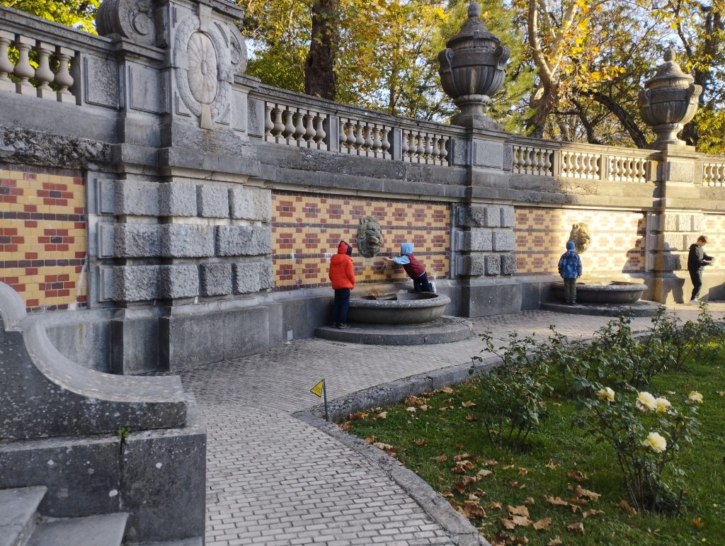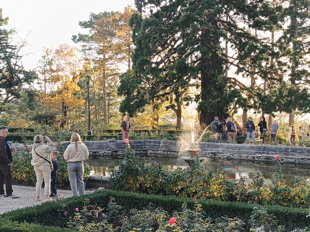 Особую атмосферу мероприятию придал колокольный звон часовой башни и журчание великолепных фонтанов на камерной придворцовой территории, окаймленной вечерним лесом.