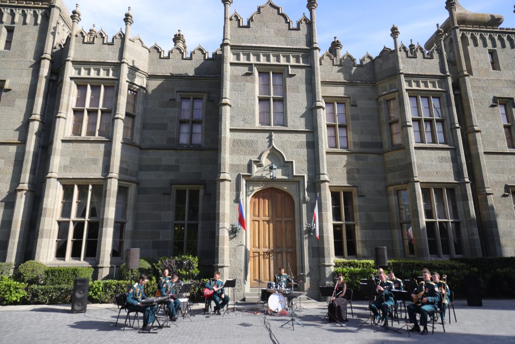 «Песни Победы» в Воронцовском дворце: Праздник музыки и патриотизма. 6 мая в Воронцовский дворец в Алупке наполнился звуками военной музыки и патриотическими мелодиями на концерте «Песни Победы», исполненном военным оркестром Севастопольского полка Росгвардии.