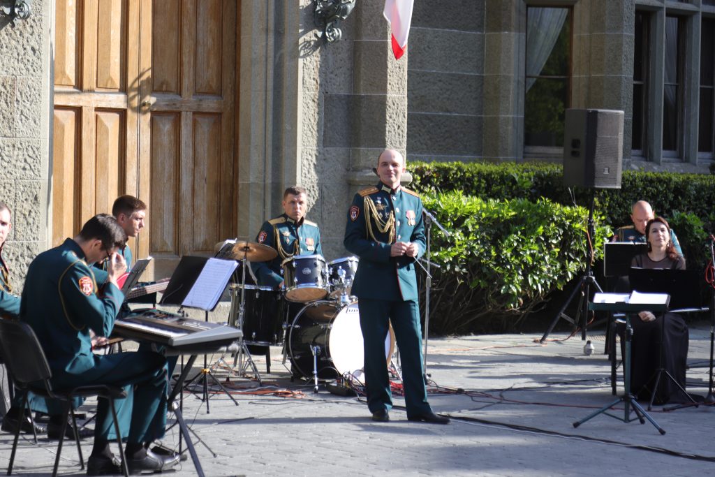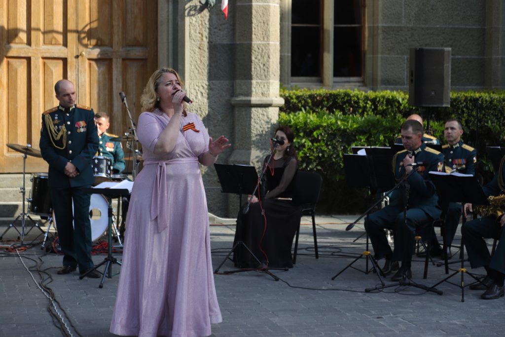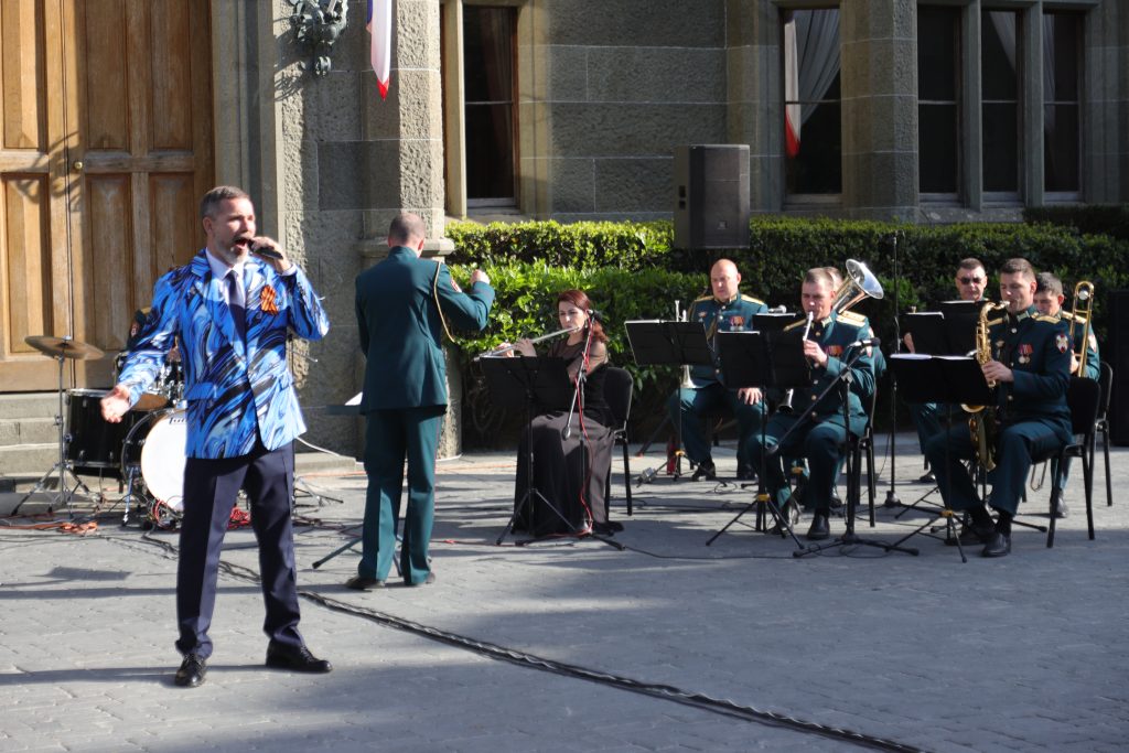Под руководством талантливого военного дирижера Валентина Таева зрители смогли насладиться великолепным музыкальным представлением, посвященным памяти павших героев.