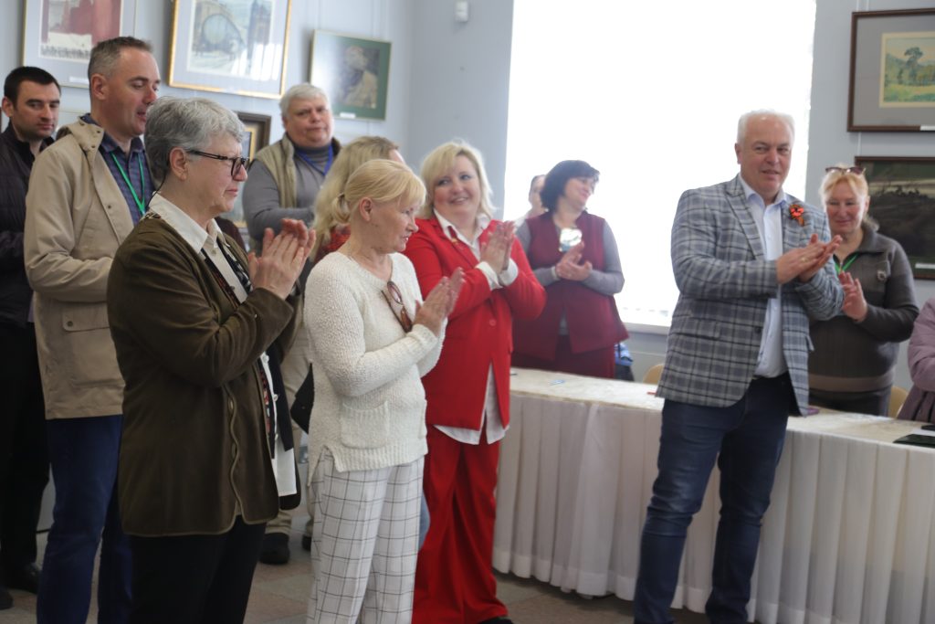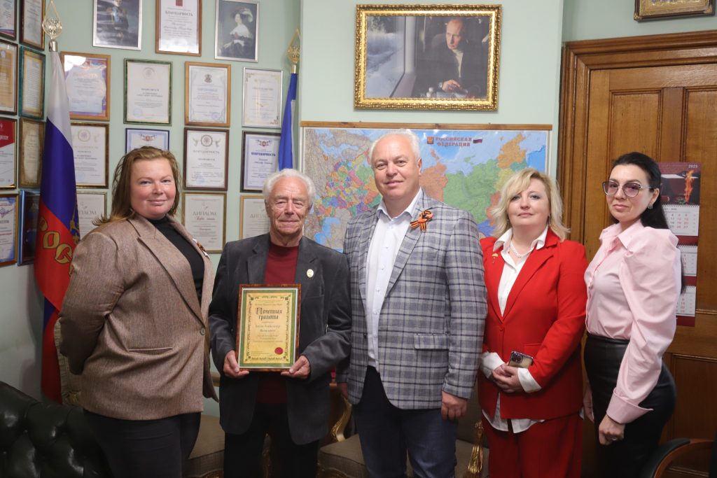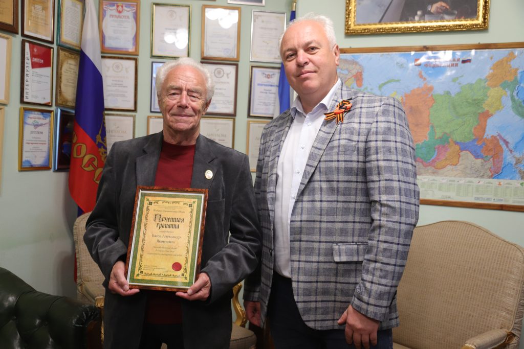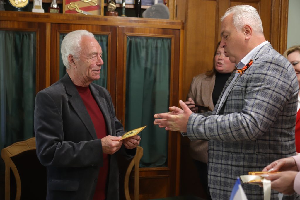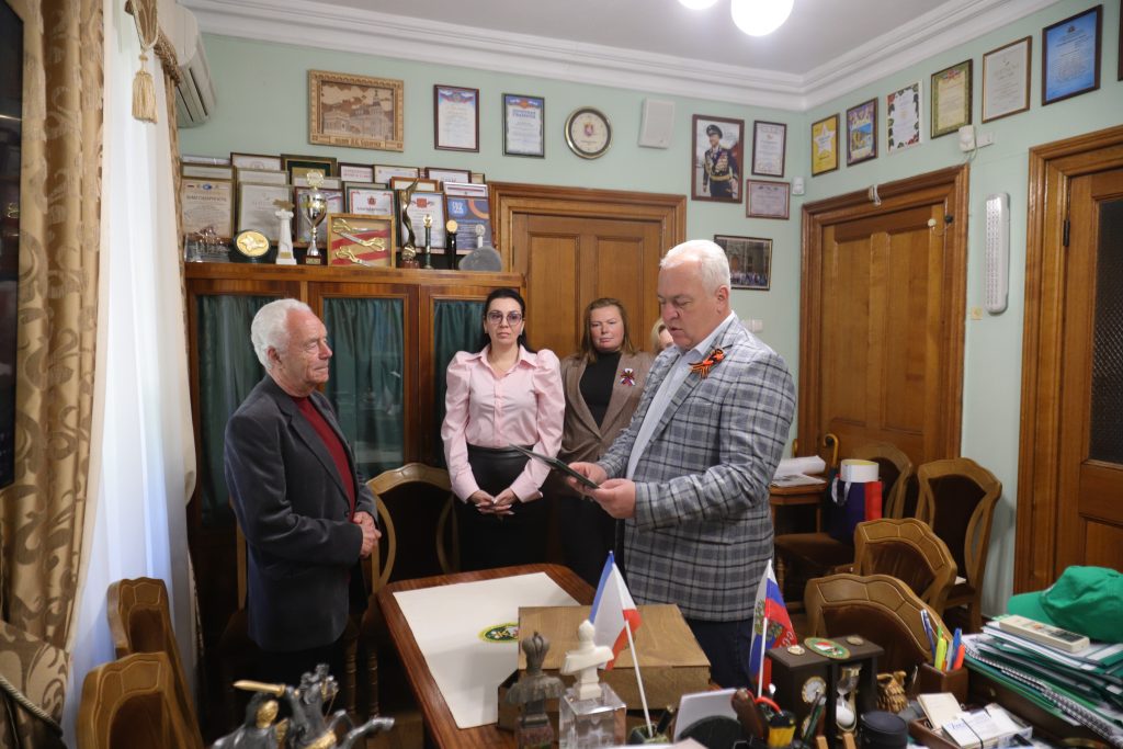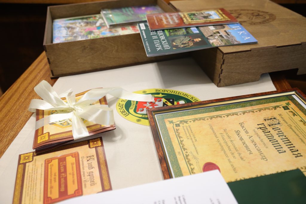 В рамках презентации временной экспозиции прошла процедура принятия Александра Яковлевича Басова в Почётные члены Клуба друзей Воронцовского дворца. В знак признательности за оказанную честь, Александр Яковлевич передал в дар музею-заповеднику живописную работу «Камни Аджимушкая», пополнив тем самым собрание изобразительного искусства Воронцовского дворца.