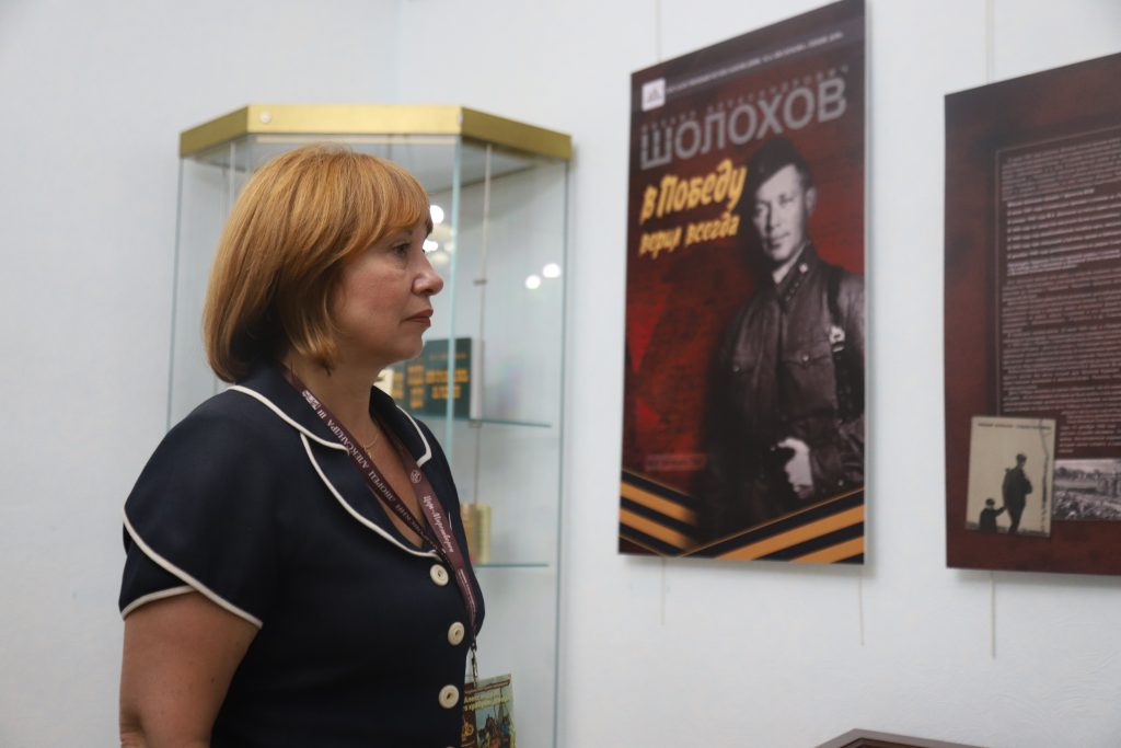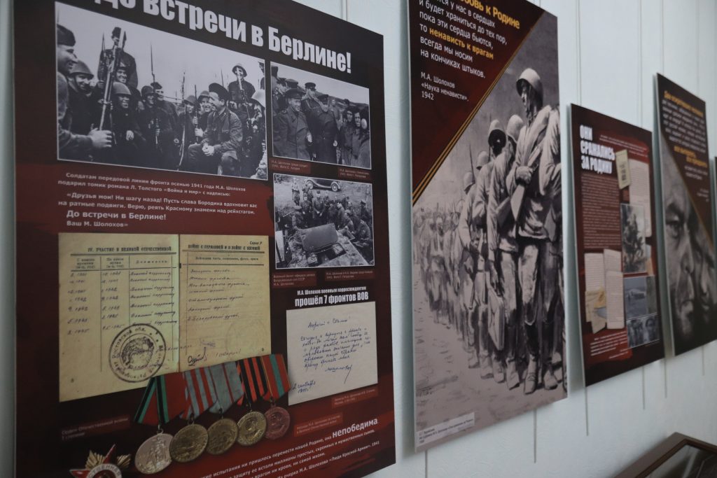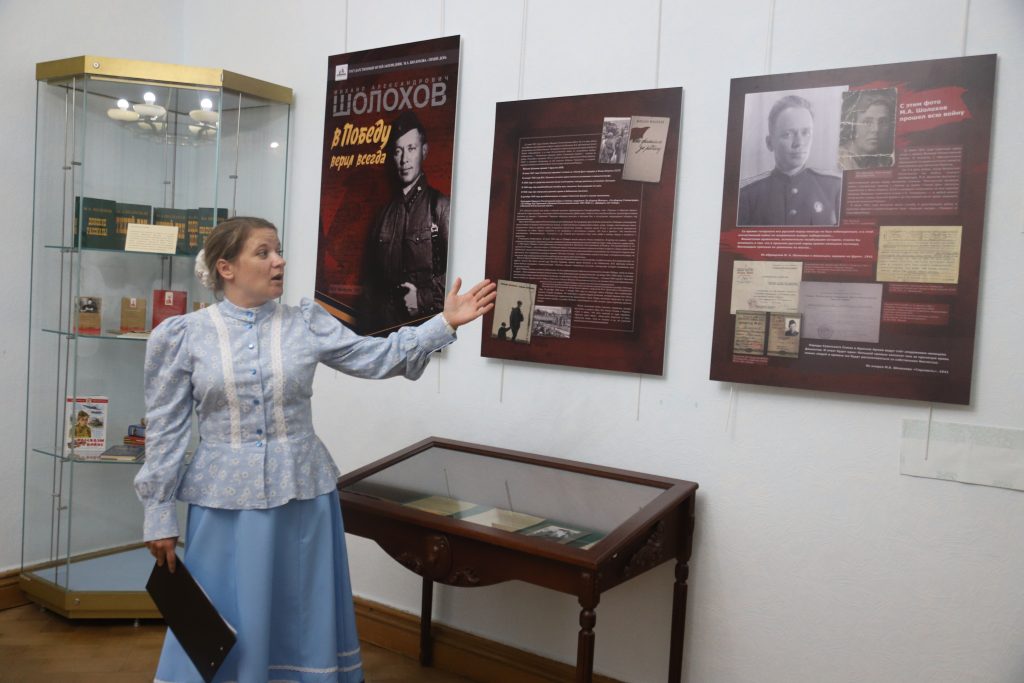 Презентацию тематической выставки «Шолохов в Победу верил всегда», рассказывающую о боевом пути в годы Великой Отечественной войны одного из самых значимых писателей XX в., Михаила Александровича Шолохова, провели сотрудники ГМЗ А.М. Шолохова «Тихий Дон». Автор с мировой известностью прошёл всю войну военным корреспондентом, пережил тяжёлые потери, показал себя настоящим патриотом. Представленные предметы — фотографии военных лет, рукописи статей, личные письма, связанные с пребыванием писателя на фронте, отражают неослабевающую веру писателя Михаила Шолохова в Победу и активную гражданскую позицию в годы Великой Отечественной войны.