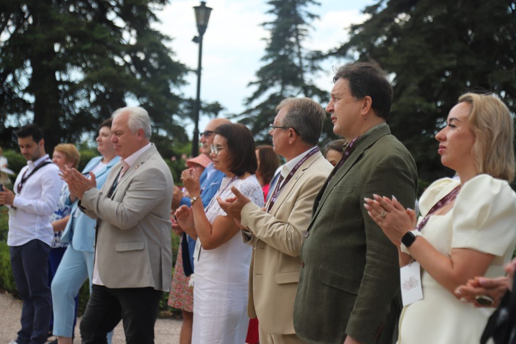 По сложившейся традиции участники и гости проекта возложили цветы к памятнику Императора Александра III на территории Массандровского дворца. Особую торжественность событию придавал мелодичный звон колоколов дворцовой звонницы и мелодичное журчание старинных фонтанов.