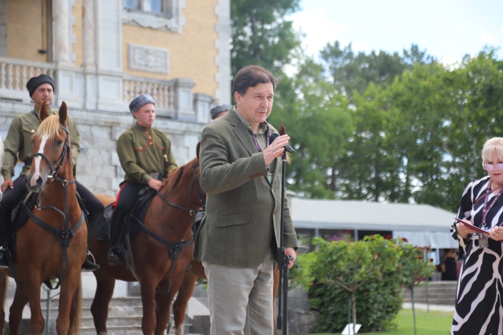 С приветственным словом к гостям и участникам Массандровского музея обратился Иванченко Ярослав Александрович, Председатель Исполкома Черноморской ассоциации международного сотрудничества, Председатель наблюдательного совета ГАУК РК «Алупкинский музей-заповедник», пожелавший музеям дальнейшей успешной реализации совместного проекта, способствующего защите исторической правды.