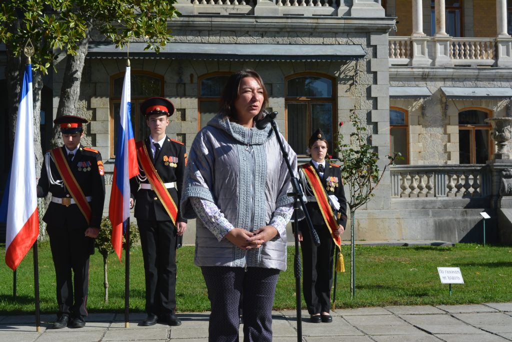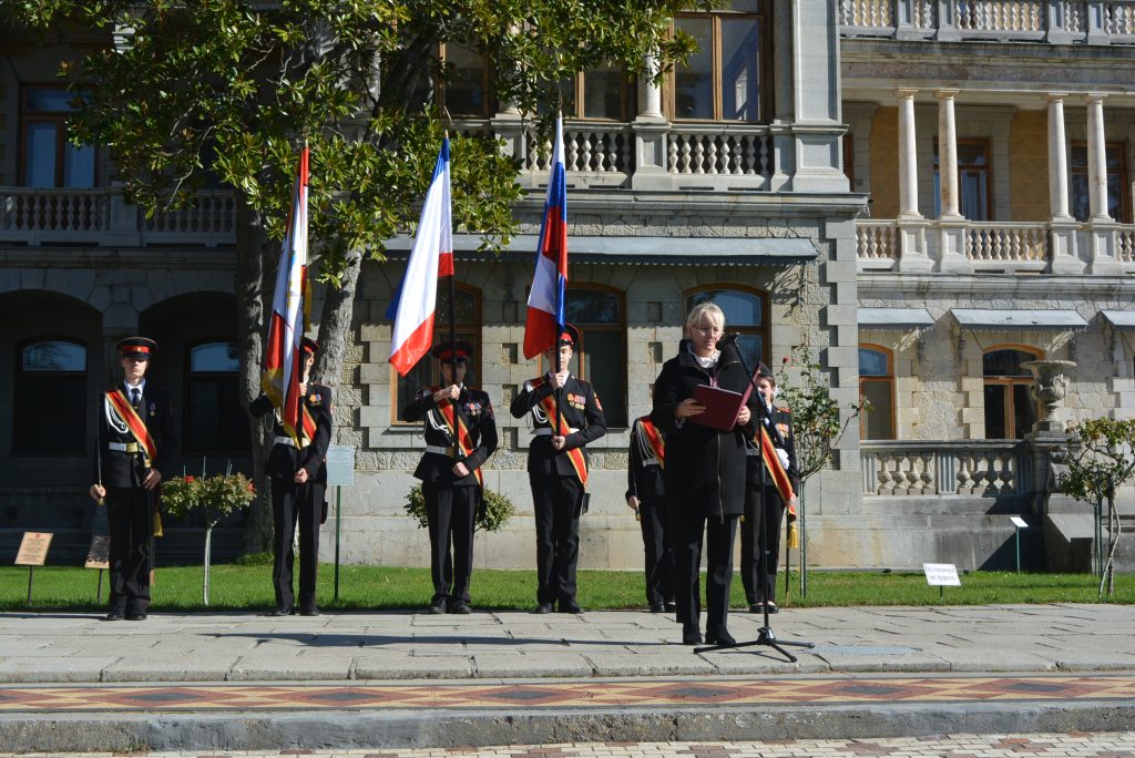 С приветственным словом от имени директора Алупкинского дворца-музея Балинченко Александра Петровича обратилась к собравшимся заведующий Массандровским филиалом Татьяна Анатольевна Литвинова, отметив актуальность данного просветительского проекта, призванного стать важным элементом поддержания искренних патриотических чувств граждан Российской Федерации.