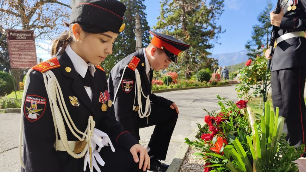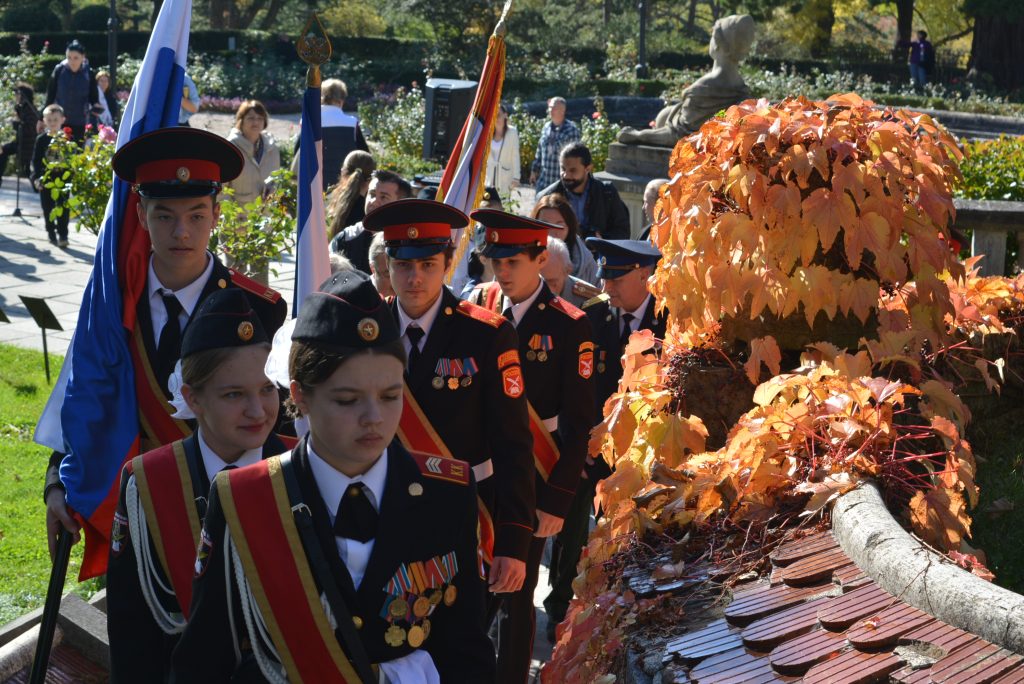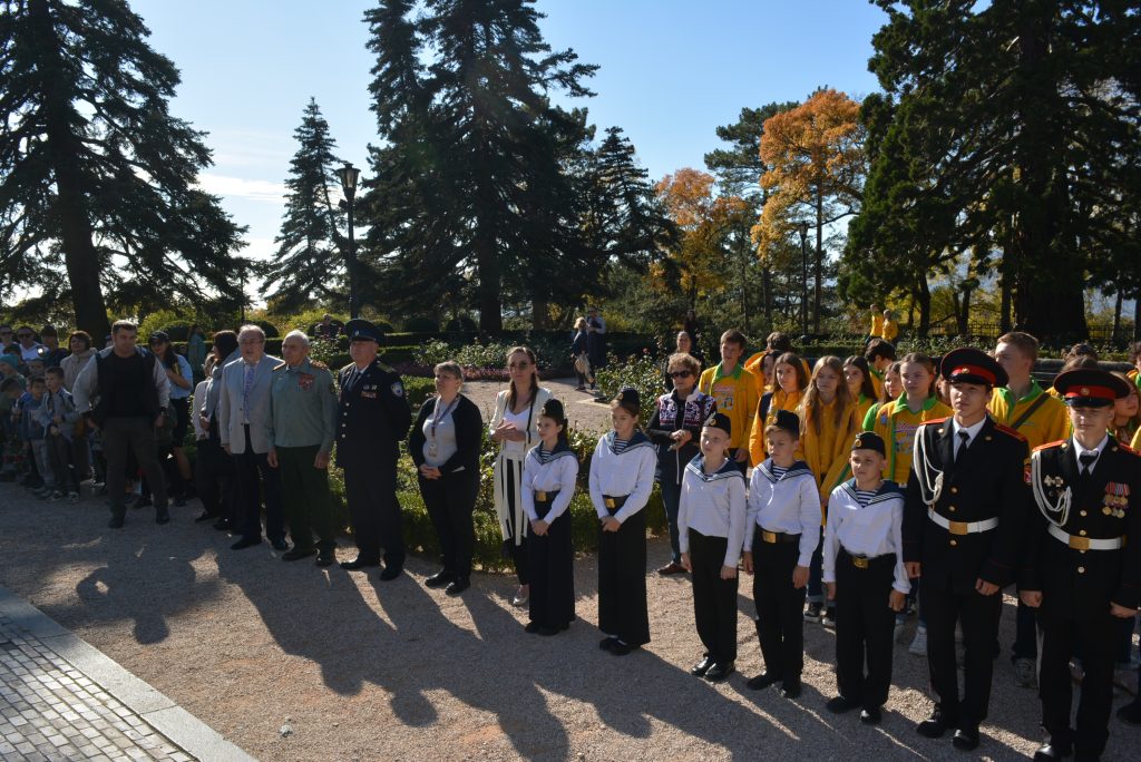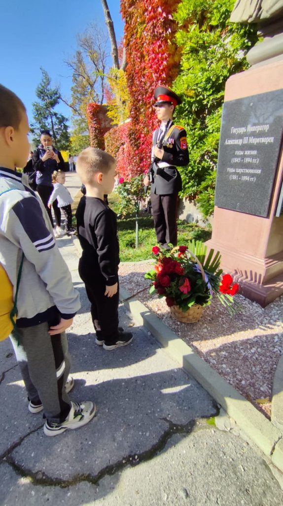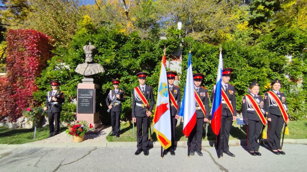 Гостей и руководителей мероприятия пригласили на возложение цветов к бюсту Императора Александра III в преддверии Дня памяти Императора Александра III, посвященному 131 году со дня кончины Государя. Торжественное возложение цветов провели воспитанники Кадетского Корпуса имени Императора Александра III МБОУ Ялтинской средней школы №11 и учащиеся МБУДО «Детский морской центр».