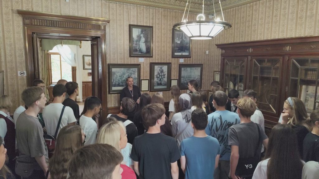 В рамках сотрудничества Массандровского дворца с МБОУ «Ялтинская средняя школа №11» и МБУДО «Детский экологический центр» музей посетили юные исследователи-краеведы. Они познакомились с основной экспозицией и выставкой на третьем этаже музея «Казак без веры – не казак» в рамках изучения героического прошлого своей родины.