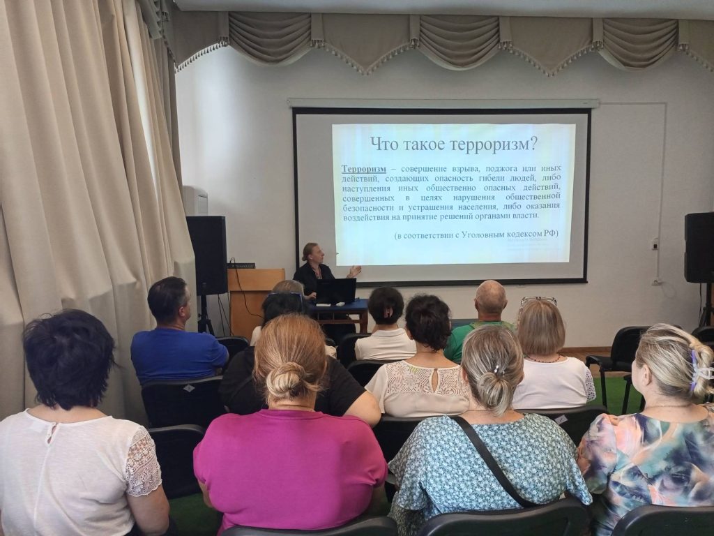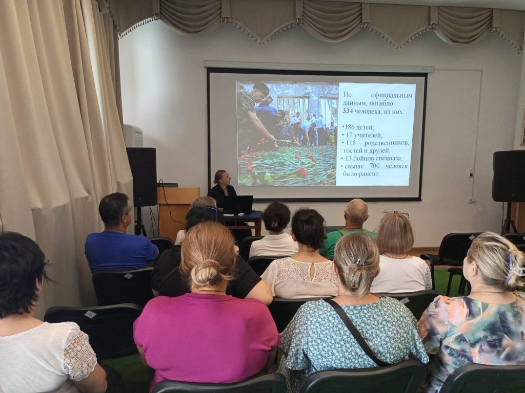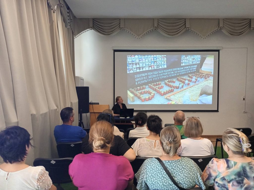 В этот день в Массандровском дворце была проведена тематическая беседа День солидарности борьбы с терроризмом «Час памяти трагедии в Беслане». В ходе мероприятия сотрудники и посетители узнали о самом понятии «терроризм», его целях и о крупных терактах последних десятилетий. Более подробно остановились на трагедии, случившейся в Беслане, и о том какие действия необходимо предпринимать, если вы оказались вовлечены в террористическую деятельность. Каждому человеку важно знать, что с терроризмом необходимо не только бороться, но и гораздо важнее и эффективно предупреждать его возникновение.