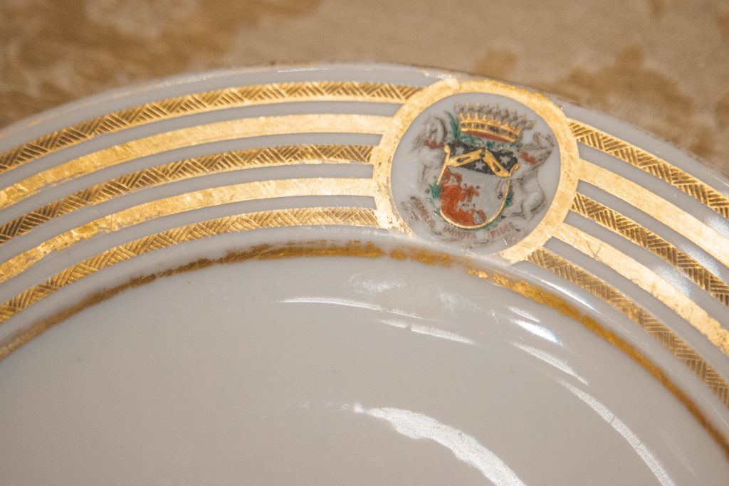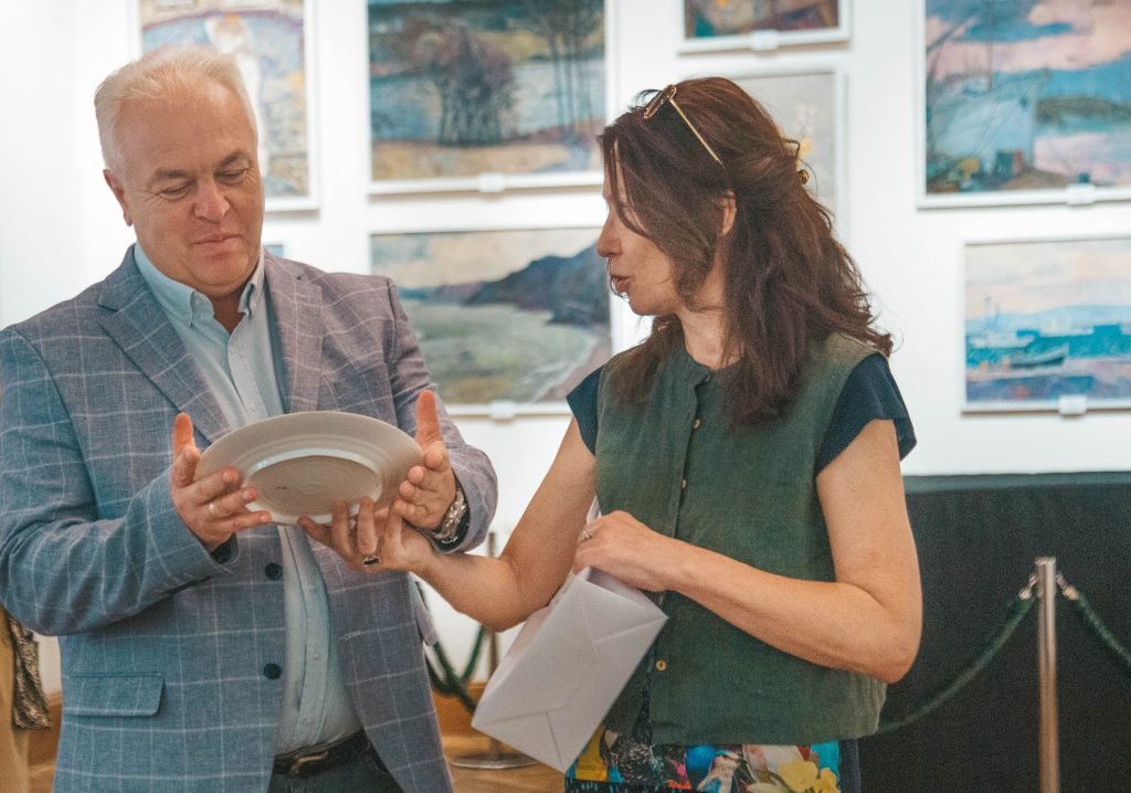 Захарова Наталья Вячеславовна, актриса, президент русского общества. Натэлла Дмитриевна Шереметева, антиквар и идейный вдохновитель выставки, преподнесла от антикварно-художественной галереи «Стикс» в дар музею фарфоровую тарелку из собрания Воронцовых.